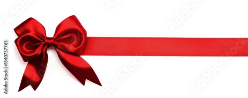 Red Satin Bow and Ribbon on White Gift Decoration, Holiday Design Gift wrapping, Ribbon bow