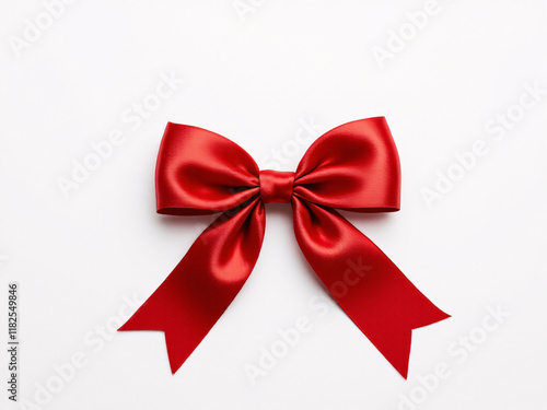Red satin bow on ribbon, elegant and festive, perfect for holiday gift wrapping and decoration.