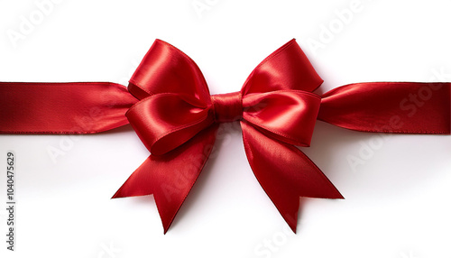 Red satin bow ribbon scroll isolated on white background with clipping path for Christmas holiday and wedding anniversary card confetti design decoration