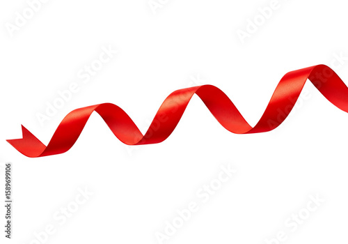 Red satin curly ribbon element for decoration or celebration. Isolated on transparent background, png