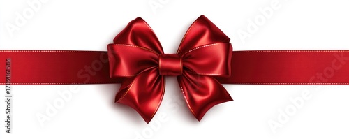 Red satin ribbon bow atop a horizontal ribbon (1)