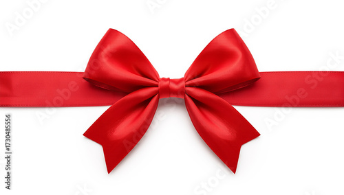 Red satin ribbon bow isolated on white background, decorative gift wrap element for celebration, holiday, birthday and Christmas design