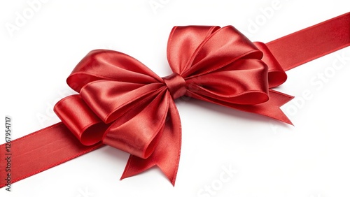 Red Satin Ribbon Bow Isolated on White Background, gift, decoration