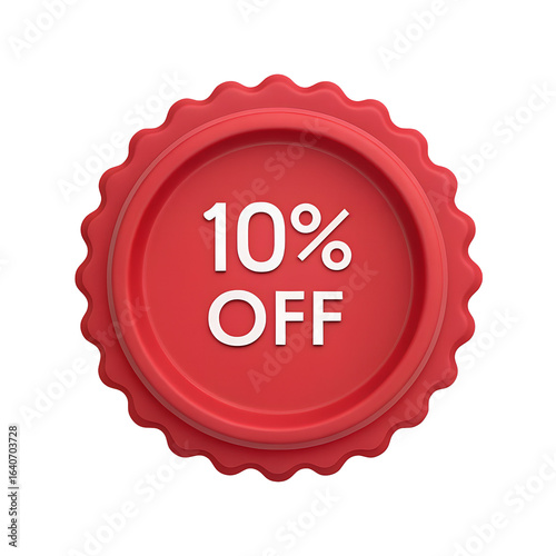 Red seal stamp with 10 percent off text isolated on transparent background