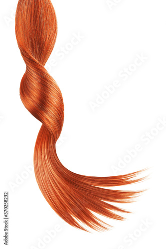 Red shiny hair on white background, isolated