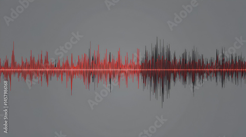 Red sinusoid impulse signal line. Black curve sound wave. Voice or music audio concept. Pulsating electronic radio graphic.
