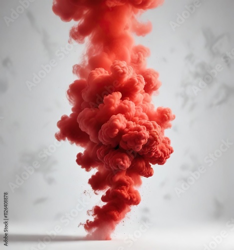 Red smoke cloud billowing on white background, dynamic, airy, flow, abstract