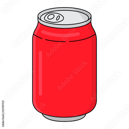Red soda can. Cooling fizzy drink. Vector illustration isolated on white background