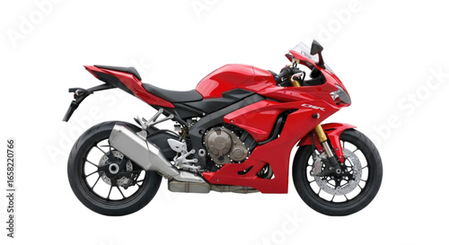 Red Sport Motorcycle with Black Wheels cutout isolated on transparent bg, png