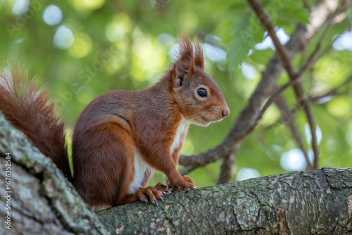 Red Squirrel Perched on a Tree Branch: Wildlife Photography