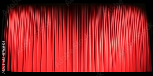 Red Stage Curtain Illustration with Spotlight on Black Background