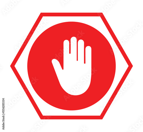 Red STOP Sign Icon – Vector Illustration of Hand Stop Warning Symbol Isolated on White, vector illustration.