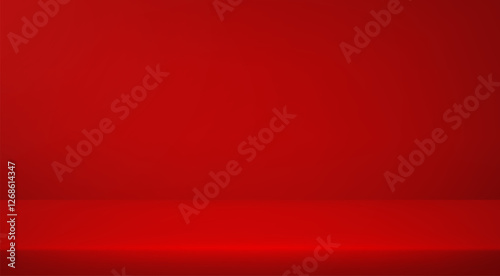 Red studio background. Empty Room Studio with table. Space for selling products, backdrop, wallpaper, background, text. Vector illustration.