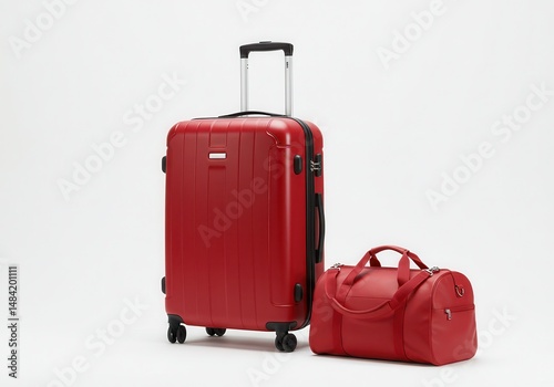 Red suitcase and duffel bag ready for a trip on a white background
