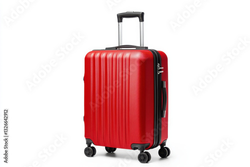 red suitcase with wheels, featuring sleek design and sturdy handle, perfect for travel and adventure. Its vibrant color adds touch of style to any journey