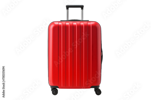 Red Suitcase With Wheels on White Background. On a White or Clear Surface PNG Transparent Background.