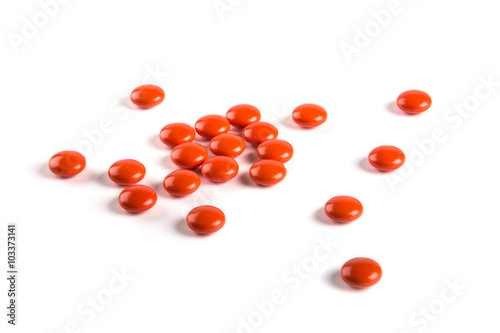 Red tablets on white background