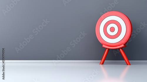 Red Target on Stand Against Plain Gray Wall in Minimalist Setting
