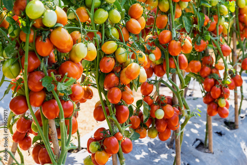 red tomato on field agriculture for harvesting.