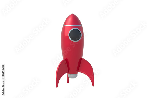 Red toy rocket isolated on white background. 3d render