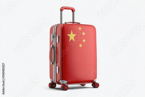 Red travel suitcase with the national flag of China, featuring a modern design and retractable handle--ideal for representing Chinese tourism, travel essentials, and international.