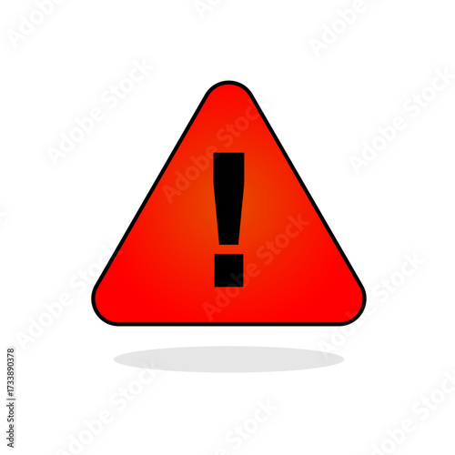Red triangular warning sign with a black exclamation mark inside, casting a soft shadow on a white background.
