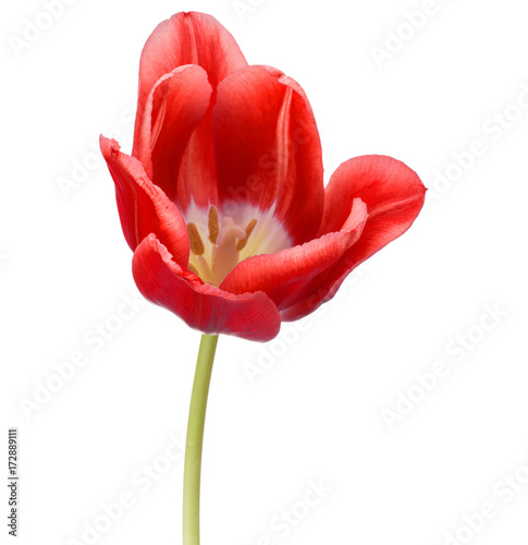 red tulip flower head isolated on white background