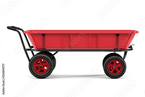 Red Utility Cart on White Background A Versatile Tool for Transporting Goods and Materials, perfect for garden or warehouse use.