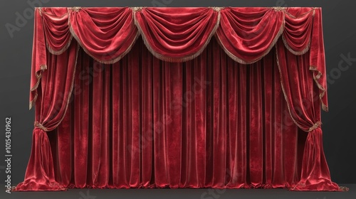 Red velvet curtain isolated on transparent background. Theater or cinema show performance stage decoration, opera concert event presentation, movie, drama, scene