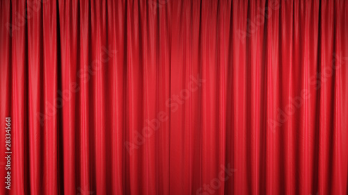 Red velvet curtain or drapes in theater. 3d illustration.