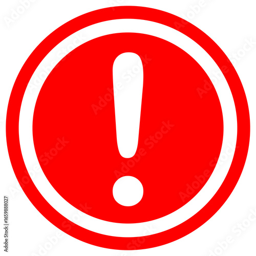 Red warning icon with white exclamation mark in a circle, isolated on transparent background. High-resolution PNG format, ideal for alert signs, UI design, and safety communication.
