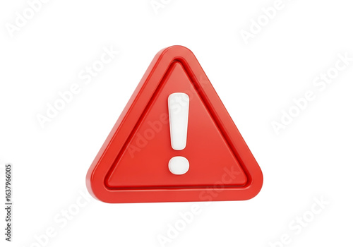 red warning Red 3D warning triangle with exclamation mark, caution hazard alert icon, safety symbol isolated on white background, warning signsign