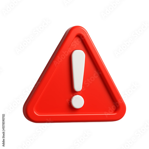 Red Warning Triangle — 3D Caution Icon with Exclamation Mark on Transparent Background