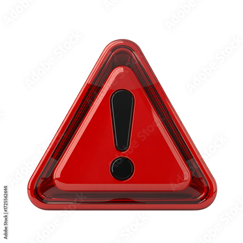 Red warning triangle exclamation mark symbol alert sign danger caution notification icon isolated on transparent background