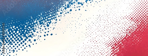 Red, white, and blue halftone dotted background.