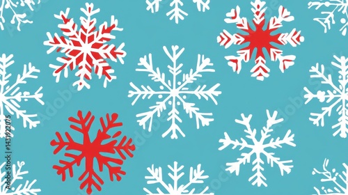 Red white snowflakes winter teal background pattern