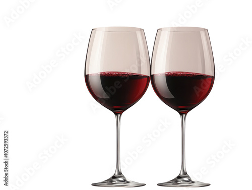 Red wine glasses on white background. PNG transparent.