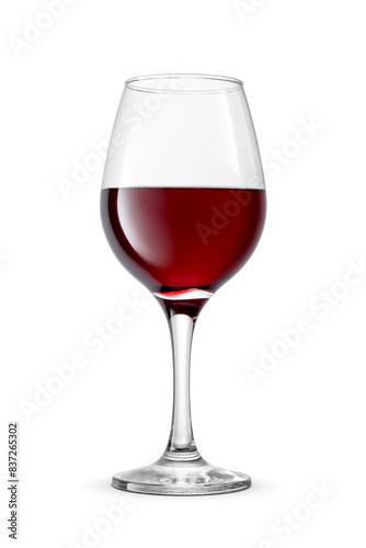 Red wine in a glass with a long stem isolated. Transparent PNG image.