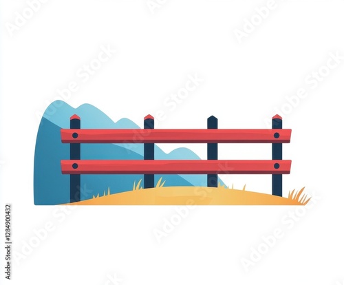 Red Wooden Fence and Blue Mountains Landscape Illustration