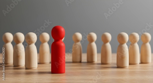 Red Wooden Figure Stands Out Among Others Representing Leadership Concept