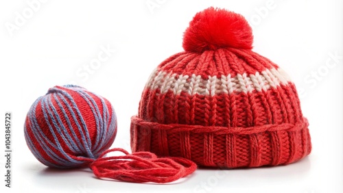 red wool cap wool, thread, isolated, yarn, knitting, ball, hat, knit, red, white, winter, cap, clew, craft, warm, blue, clothing, hobby, skein, crochet, cotton, textile, knitted, colorful, object