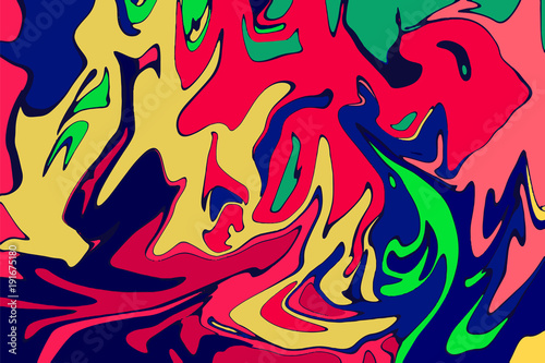 Red yellow blue digital marbling. Abstract marble texture. Liquid paint abstraction.
