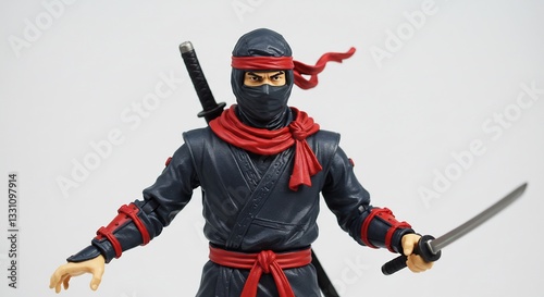 Red-banded Ninja Action Figure Striking Pose Soft Light. AI Generated