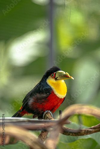 Red-breasted Toucan (Ramphastos dicolorus) Portrait Highlighting Its Intense Gaze and Damaged Beak