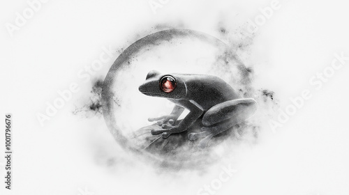 Red-eyed frog illustration on dark background, Dotwork Tattoo.