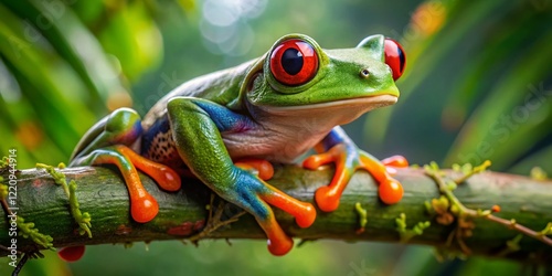 Red-Eyed Tree Frog Closeup on Branch in Rainforest - Vibrant Amphibian Photography