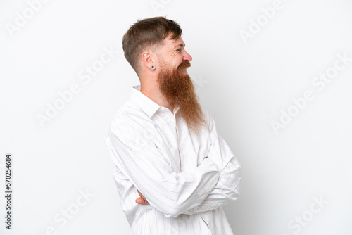 Redhead man with long beard isolated on white background looking side
