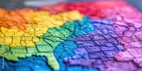 redistricting concept with map being divided into colors based on demographics and political affiliation