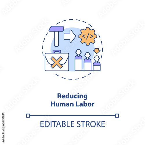 Reducing human labor concept icon. Industry 4.0 goal idea thin line illustration. Automation process. Robots displacing human workers. Vector isolated outline RGB color drawing. Editable stroke