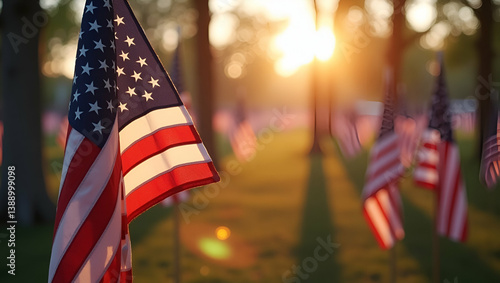 Refined commemorative imagery celebrating the enduring Memorial Day legacy with symbolic displays dignified ceremonies and cultural tributes that evoke national pride in Photo Stock Concept and emp